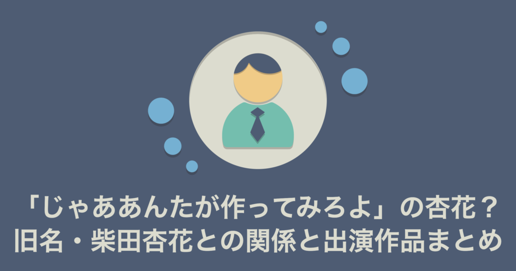 「じゃああんたが作ってみろよ」の杏花は誰?旧名・柴田杏花との関係と出演作品まとめ